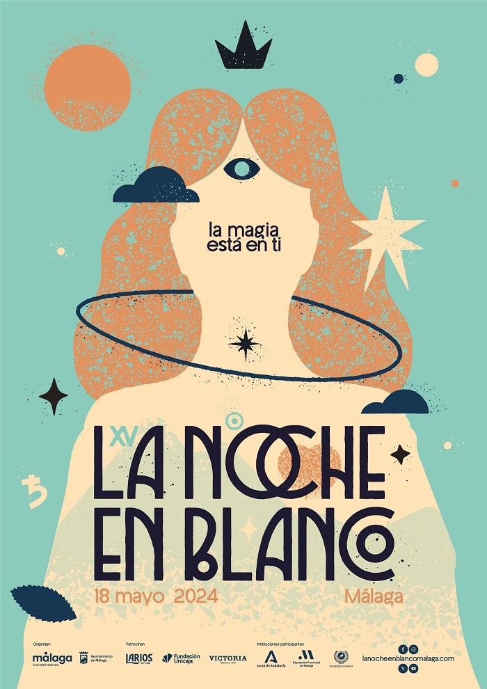 ‘Lo mágico’ ha sido el tema elegido por la ciudadanía para la celebración de la Noche en Blanco 2024 y La magia está en ti lo que representa la imagen de su decimoquinta edición. La gráfica de esta edición está inspirada en el lienzo El hijo del hombre (1964) del artista belga René Magritte (1898-1967), y cuenta con dos versiones complementarias: hombre-mujer o noche-día. El sábado 18 de mayo volverá a ser un día de celebración cultural para malagueños y visitantes. Serán cinco horas dedicadas a esta cita anual con la cultura participativa que se desarrollará entre las 20.00 y la 01.00 horas.