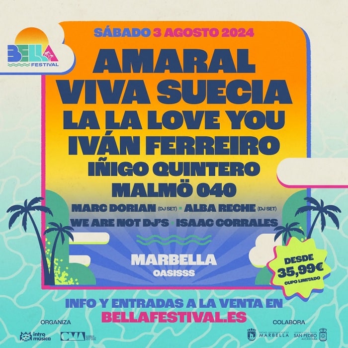 Queda menos de un mes para la celebración de la segunda edición de Bella Festival, que regresará el próximo 3 de agosto en el recinto Oasis Marbella Fest. Tras su éxito del año pasado congregando a más de 10.000 asistentes, su potencial crece a la hora de ofrecer las mejores propuestas de la música independiente del panorama nacional. Una filosofía que pasa por disfrutar de artistas consagrados y talentos emergentes dándose cita en un espacio único en la Costa del Sol preparado y acondicionado con todas las comodidades para congregar a un público transversal.
