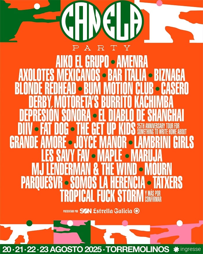 El festival Canela Party, que celebrará su decimoséptima edición del 20 al 23 de agosto en Torremolinos, anuncia la incorporación de ocho nuevos nombres a su cartel: Blonde Redhead, MJ Lenderman & The Wind, DIIV, Lambrini Girls, Biznaga, Casero, el diablo de shanghai y Somos la Herencia. Las confirmaciones se suman a un cartel que contaba ya entre sus filas con artistas como Bum Motion Club, Depresión Sonora, Derby Motoreta’s Burrito Kachimba, The Get Up Kids (rememorando el 25º Aniversario de Something To Write Home About), Grande Amore, Joyce Manor, Les Savy Fav, Maple, Mourn, Tropical Fuck Storm, Aiko el Grupo, Amenra, Axolotes Mexicanos, bar italia, Fat Dog, Maruja, Parquesvr y Tatxers.