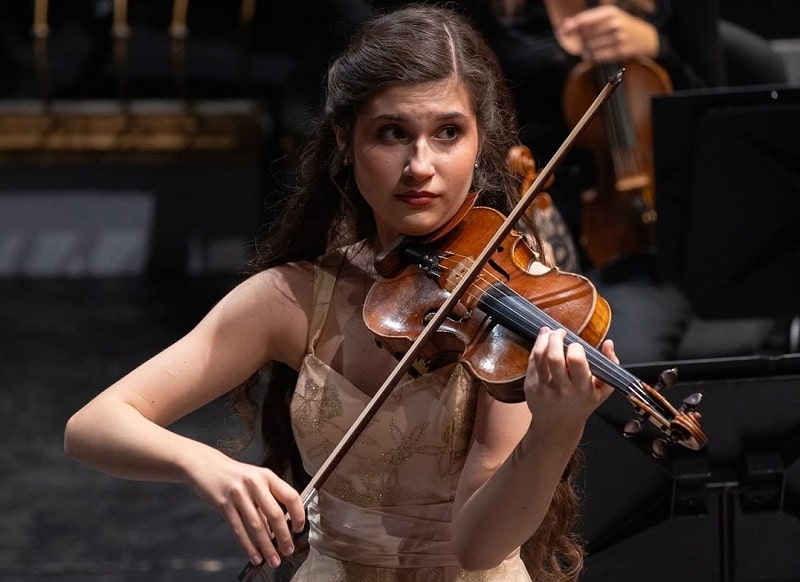 A sus 16 años, su carrera ya cuenta con más de trescientas actuaciones públicas y numerosas apariciones en medios de comunicación. Este hecho evidencia una trayectoria precoz, firme y brillante. Además, ha sido invitada a actuar en prestigiosas salas europeas. Por ello, su presencia como solista con la OFM en el Teatro Cervantes supone una nueva confirmación de su madurez artística y proyección internacional.