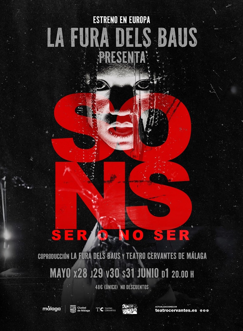 La Fura del Baus ha integrado a cuatro intérpretes malagueños en el estreno europeo de SONS: ser o no ser, una nueva creación de teatro inmersivo que se verá en Málaga en la sala de Bodegueros 38 entre el 28 de mayo y el 1 de junio. El Teatro Cervantes coproduce con la transgresora compañía catalana este comienzo de su recorrido por el Viejo Continente, al que ha llegado tras el estreno de la impactante obra el pasado mes de febrero en Buenos Aires, Argentina.