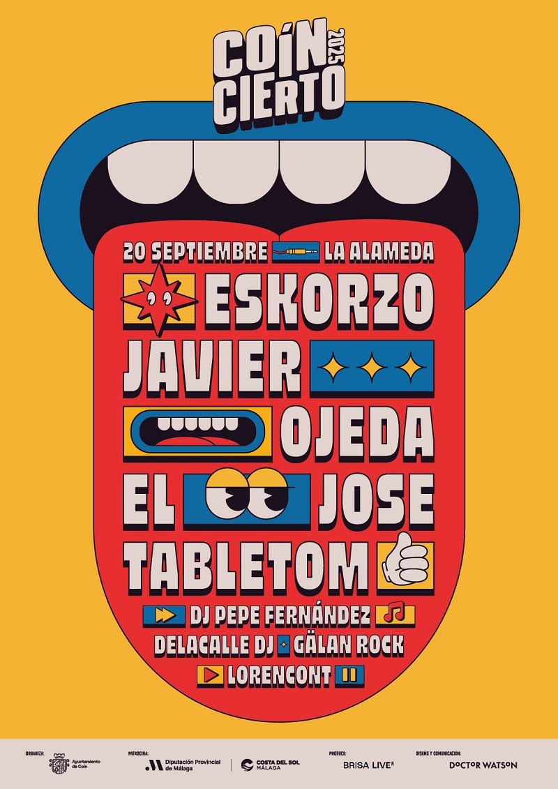 Tabletom, El Jose, Eskorzo y Javier Ojeda serán los protagonistas de esta nueva edición. Junto a ellos estará la banda alhaurina Gälan Rock, el rapero coíno LorenconT y los DJ’s locales DeLaCalle y Pepe Fernández, que completan el cartel e impulsan el talento local. Coincierto 2025 se celebrará el sábado 20 de septiembre, de 17.00 a 02.00 horas, en la plaza de la Alameda de Coín con entrada gratuita.